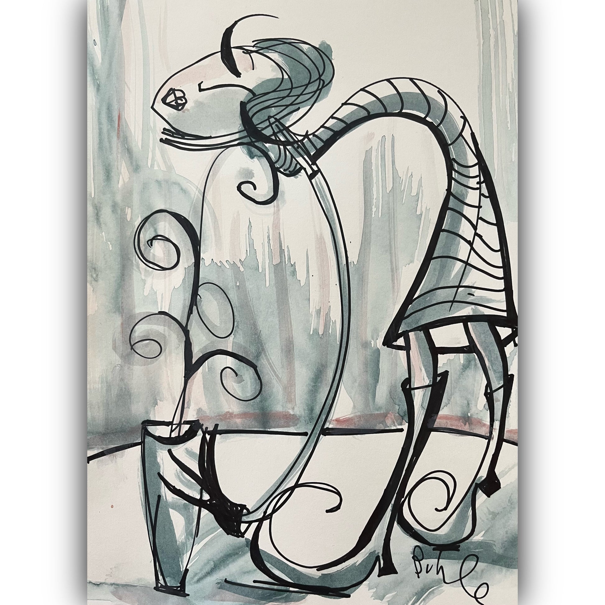 • Original unframed sketch. Charcoal, oil pastel, acrylic on card